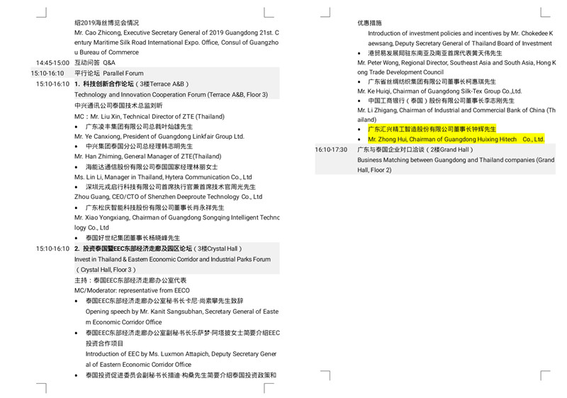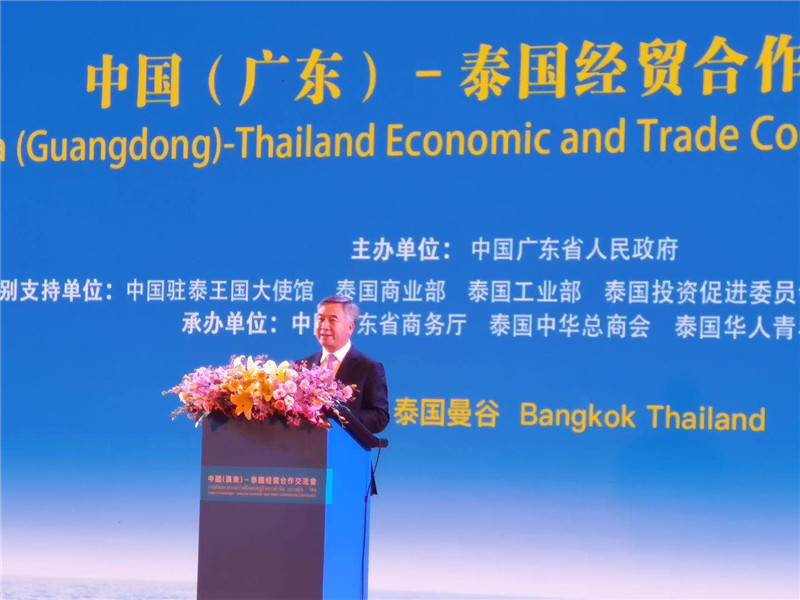 交流會(huì)上進(jìn)行粵港澳大灣區(qū)與泰國(guó)合作發(fā)展研討?hù)邚V東省企業(yè)未來(lái)發(fā)展計(jì)劃介紹,廣東省商務(wù)廳副廳長(zhǎng)陳越華先生作主持。廣東省發(fā)展與改革委員會(huì)主任、推進(jìn)粵港澳大灣區(qū)建設(shè)領(lǐng)導(dǎo)小組辦公室主任葛長(zhǎng)偉先生帶來(lái)《共享粵港澳大灣區(qū)發(fā)展新機(jī)遇、推動(dòng)廣東與泰國(guó)合作發(fā)展》的主題分享,珠海格力電器股份有限公司董事長(zhǎng)董明珠女士、科大訊飛科大訊飛股份有限公司高級(jí)副總裁杜蘭女士介紹企業(yè)未來(lái)在泰國(guó)合作發(fā)展及投資計(jì)劃。交流會(huì)還進(jìn)行《粵港澳大灣區(qū)建設(shè)背景下粵港與泰國(guó)合作發(fā)展機(jī)遇》研討沙龍環(huán)節(jié),與泰國(guó)政商界代表共同探討促進(jìn)廣東和泰國(guó)雙方的交流與合作。