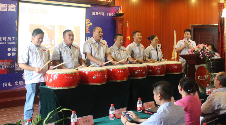 會議開始,全體員工整肅衣冠端身正意滿懷赤誠之心向企業(yè)“孝道、商道、人道”行三鞠躬禮,宣讀企業(yè)愿景——成為全球領(lǐng)先的整廠自動化系統(tǒng)解決方案提供商,企業(yè)使命——做受尊敬的好人、造受尊敬的產(chǎn)品、辦受尊敬的企業(yè)、建受尊敬的平臺,企業(yè)精神——用情做人、用心做事,團隊精神——忠誠團結(jié)、勤奮進取。隨后,匯興智造高管:鐘世鑫、胡偉路、呂常垣、黃艷、廖飛、張強,共同敲響士氣鼓、鼓舞匯興智造奮勇前進。
