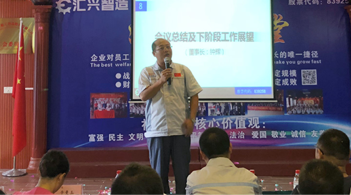 最后,由鐘輝董事長作會議總結(jié)及下階段工作展望。董事長鐘輝表示:“陪伴才是最長情的告白”感謝各位同事及貴賓對匯興智造一如既往的支持。企業(yè)的發(fā)展離不開每一位的努力,未來匯興智造將快速發(fā)展的階段。沿著老路去不了新的地方,正如我們會議場上唱響的歌曲,相信我們創(chuàng)造奇跡。會議取得圓滿成功,集眾智,匯眾力,搶時間,抓機遇,全體匯興人,一諾千金,奮斗到底!