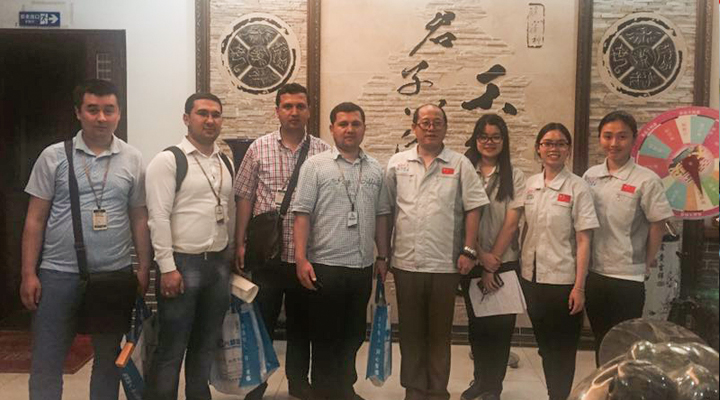 系統(tǒng)集成事業(yè)一部副總監(jiān)林顯明與烏茲別克斯坦客戶進行技術研討、商務洽談