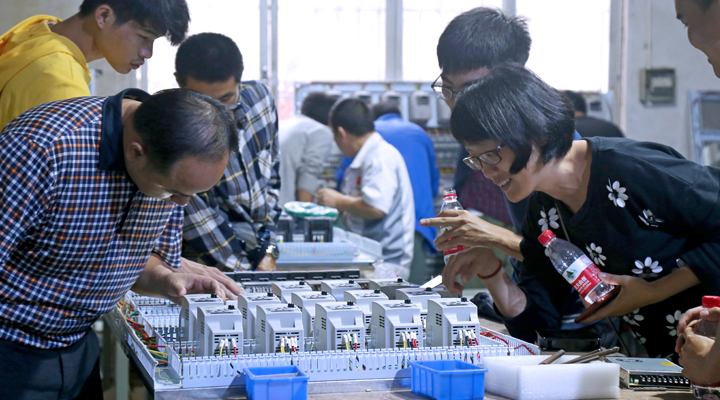 在車間,同學(xué)們看著工人熟練而又嚴(yán)謹(jǐn)?shù)亟o電箱接線,一片肅穆。有同學(xué)低聲道:“我們平時(shí)也接線,但與他們比較起來(lái),就做得太粗糙?!庇袝r(shí)候距離的產(chǎn)生僅僅在于態(tài)度。在匯興,你可以體驗(yàn)科技,學(xué)習(xí)知識(shí),權(quán)衡方法。