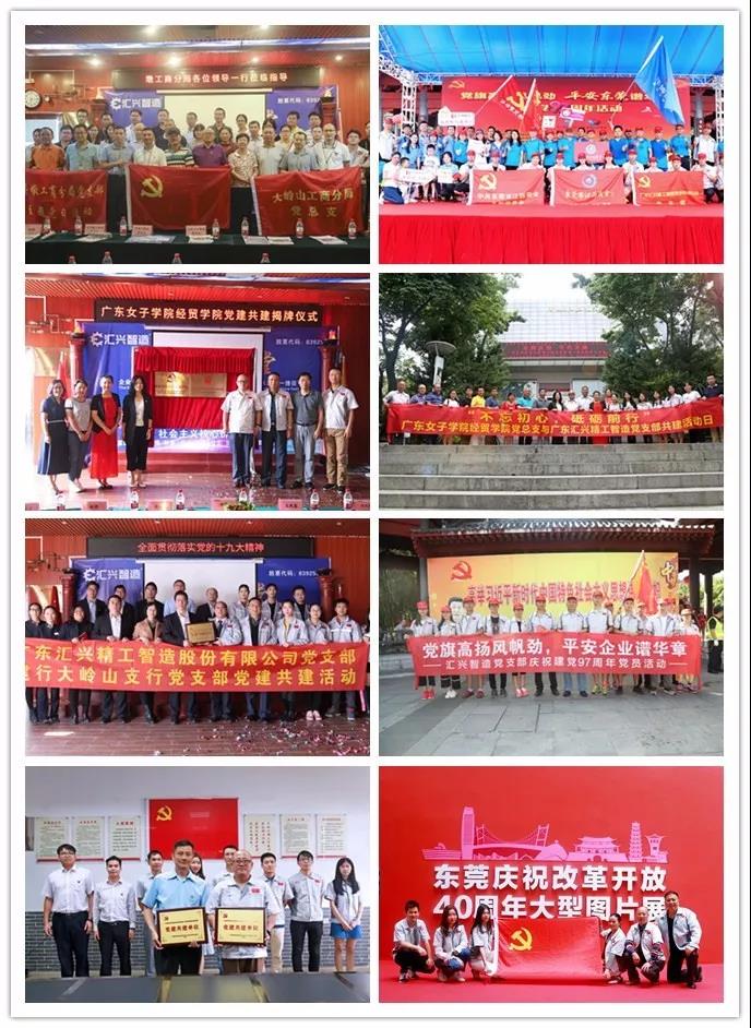 【附簡介】中國共產黨廣東匯興精工智造股份有限公司支部委員會(簡稱:匯興智造黨支部)成立于2017年5月匯興智造黨支部,現(xiàn)有正式黨員9人,入黨積極分子2人。教授級高工,匯興智造技術總工程師許光輝任黨支部書記,匯興智造黨支部圍繞“社會主義核心價值觀”為核心,高舉“黨旗映車間,助企創(chuàng)輝煌“ 旗幟,激勵全體黨員積極進取處處帶頭,增強黨員使命感和責任感,帶領全體員工,完成企業(yè)使命,承擔社會責任,回報社會、感恩社會,使企業(yè)具有強大的凝聚力和生命力,實現(xiàn)社會與企業(yè)的和諧發(fā)展。2018年,以黨建帶團建,匯興團支部榮獲“大嶺山五星團總支”,董事長鐘輝榮獲“南城街道 2018 年度‘兩新’黨組織優(yōu)秀共產黨員”,匯興智造獲評東莞首批十家友善企業(yè)。