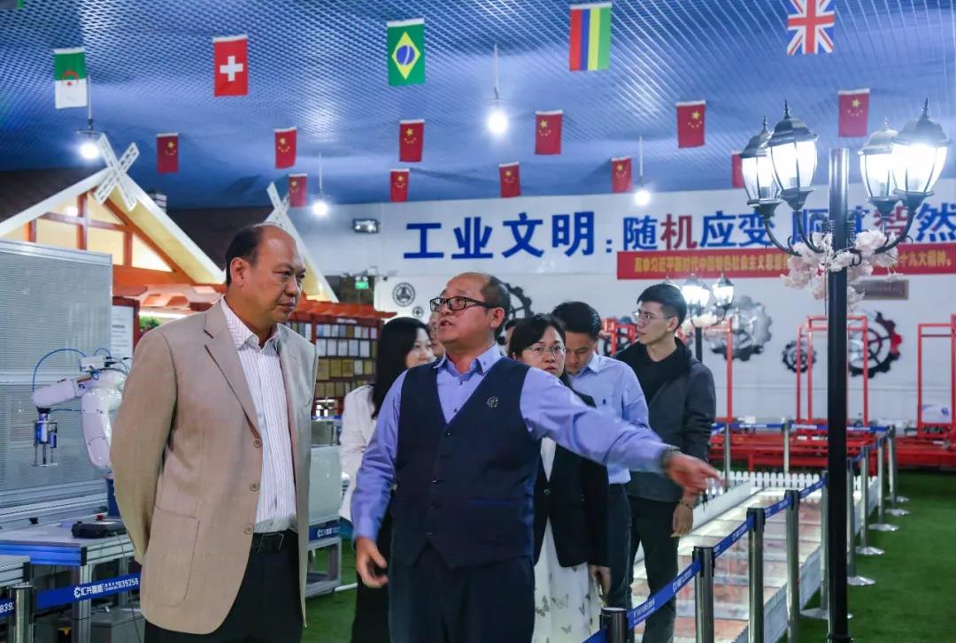 楊曉棠常委一行參觀智能制造工業(yè)4.0體驗(yàn)館、黨建陣地、社會(huì)主義核心價(jià)值觀宣傳長廊、中德智能裝備研究院等。董事長鐘輝介紹了公司發(fā)展概況,并匯報(bào)了公司增資擴(kuò)產(chǎn)、項(xiàng)目用地進(jìn)展等企業(yè)運(yùn)營情況。