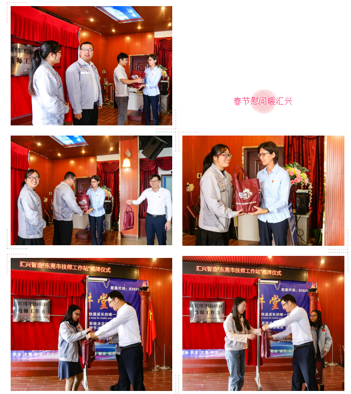 鐘輝董事長(zhǎng)向蒞臨此次揭牌儀式的領(lǐng)導(dǎo)致以衷心的感謝。首先作了企業(yè)人才培養(yǎng)及規(guī)劃報(bào)告,表示公司一直秉承“創(chuàng)于手、精于工、智于器、匠于心”的工匠精神,任何事情都要精益求精、鍥而不舍,把手頭上的事情做到極致。接下來(lái),將積極發(fā)揮技師工作站的指導(dǎo)作用,致力于發(fā)展高技能人才培養(yǎng)計(jì)劃。他強(qiáng)調(diào),感謝東莞這片沃土,讓我們努力在2019年實(shí)體經(jīng)濟(jì)發(fā)展面臨著國(guó)內(nèi)外復(fù)雜的嚴(yán)峻形勢(shì)下,公司仍能在逆境中實(shí)現(xiàn)增長(zhǎng)。未來(lái),匯興將更加重視技能人才的引進(jìn)和培養(yǎng)工作,充分發(fā)揮高技能人才引領(lǐng)帶動(dòng)作用,推動(dòng)高技能人才隊(duì)伍建設(shè),增強(qiáng)企業(yè)創(chuàng)新能力和核心競(jìng)爭(zhēng)力,把工作站的實(shí)際工作轉(zhuǎn)化為技術(shù)改革和提升人才素質(zhì)的力量源泉,為公司的發(fā)展提供有效的技能人才支撐,為東莞市打造“技能人才之都”城市貢獻(xiàn)一份力量。會(huì)后,大嶺山人社分局春運(yùn)有序流動(dòng)領(lǐng)導(dǎo)小組與匯興員工面對(duì)面交流,并送上春節(jié)慰問(wèn)品,政府“送政策”“送溫暖”暖企暖心活動(dòng)細(xì)節(jié),如同這寒冷的冬季中最溫暖人心的一抹陽(yáng)光,讓與會(huì)員工代表非常感動(dòng)如沐春風(fēng)倍感溫暖。技師工作站是東莞市新型高技能人才培養(yǎng)模式載體,是指承擔(dān)制訂技師培養(yǎng)規(guī)劃,開(kāi)展技術(shù)培訓(xùn),多渠道加快培養(yǎng)高技能人才,總結(jié)推廣技師培養(yǎng)經(jīng)驗(yàn),普及應(yīng)用生產(chǎn)技能等活動(dòng),并建立技能人才和技能開(kāi)發(fā)成果信息庫(kù),展示技能創(chuàng)新成果的工作室,進(jìn)而推動(dòng)行業(yè)、企業(yè)產(chǎn)業(yè)升級(jí)和技術(shù)進(jìn)步。匯興智造在智能制造領(lǐng)域擁有近20年的研發(fā)、設(shè)計(jì)、實(shí)施、應(yīng)用經(jīng)驗(yàn),通過(guò)打造智能裝備全產(chǎn)業(yè)鏈產(chǎn)品(智能裝備硬件+系統(tǒng)軟件+系統(tǒng)服務(wù)),賦予傳統(tǒng)生產(chǎn)制造業(yè)更智能的元素,并用具性價(jià)比的整廠自動(dòng)化系統(tǒng)解決方案幫助更多企業(yè)解決生產(chǎn)制造的痛點(diǎn)。此外,公司還獲批建立了“廣東省院士專家企業(yè)工作站”、“東莞市院士工作站”、“省級(jí)博士后創(chuàng)新實(shí)踐基地”、“廣東省智能制造系統(tǒng)工程技術(shù)研究中心”、“東莞市研究生培養(yǎng)工作站”、“東莞市技師工作站”、“江西理工大學(xué)先進(jìn)制造技術(shù)研發(fā)中心”、“南昌大學(xué)機(jī)電工程學(xué)院研究生聯(lián)合培養(yǎng)基地”、“南昌大學(xué)機(jī)電工程學(xué)院研究生實(shí)踐基地”、“東莞理工學(xué)院教學(xué)實(shí)習(xí)基地”、“東莞理工學(xué)院城市學(xué)院就業(yè)實(shí)習(xí)基地”、“東莞職業(yè)技術(shù)學(xué)院校企合作伙伴單位”等多個(gè)科研平臺(tái),這些科研平臺(tái)的引進(jìn)為技師工作站建設(shè)賦能。
