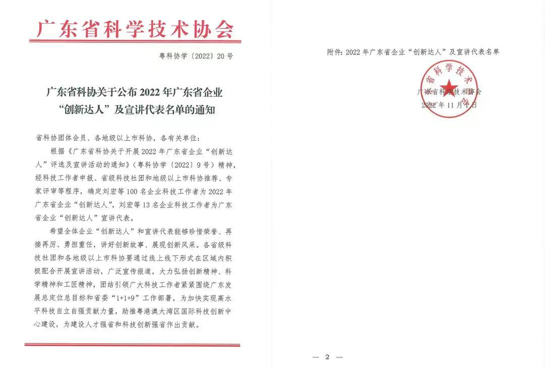 成功入圍“2022年廣東省企業(yè)創(chuàng)新達人及宣講代表”