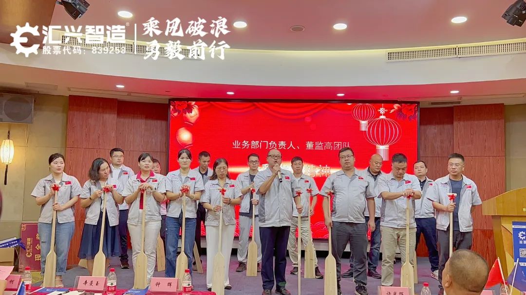 參會現(xiàn)場董監(jiān)高上臺在沒有任何彩排的情況下,進行劃龍舟展示,在鐘董的指揮下,整齊劃一的劃動船槳。意在把團結(jié)拼搏、奮勇向前的龍舟精神轉(zhuǎn)化為推動匯興智造高質(zhì)量發(fā)展的動力,激勵大家在干事創(chuàng)業(yè)的賽道上,拼出精彩,拼出未來。