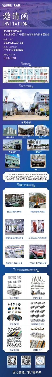 【展會邀請】匯興智造邀您共聚第15屆中國(廣州)國際物流裝備與技術(shù)展覽會