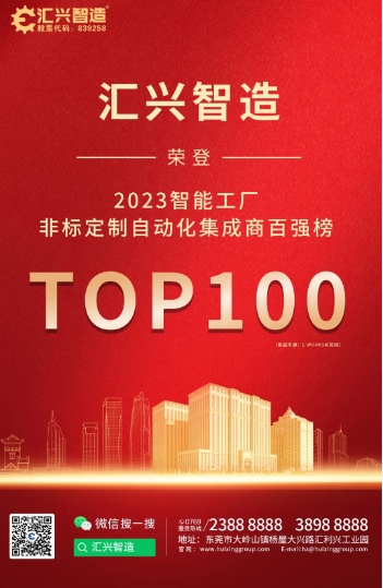 祝賀!匯興智造榮登《2023智能工廠非標(biāo)定制自動化集成商百強榜》